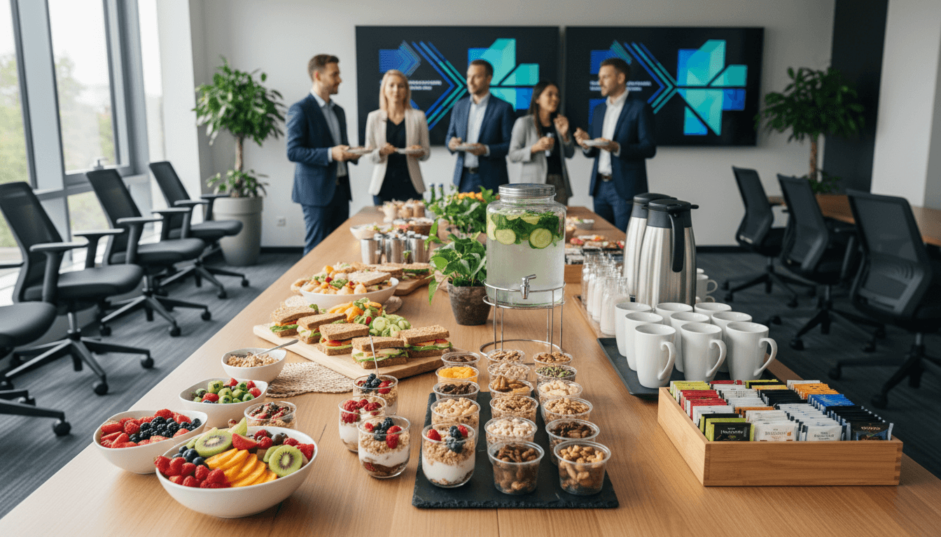 During afternoon breaks, offering participants healthy snacks helps them maintain their energy. Fresh fruits, nuts, energy bars, vegetable sticks, and hummus are healthy alternatives. Coffee and tea are also essential for participants who need to stay alert.