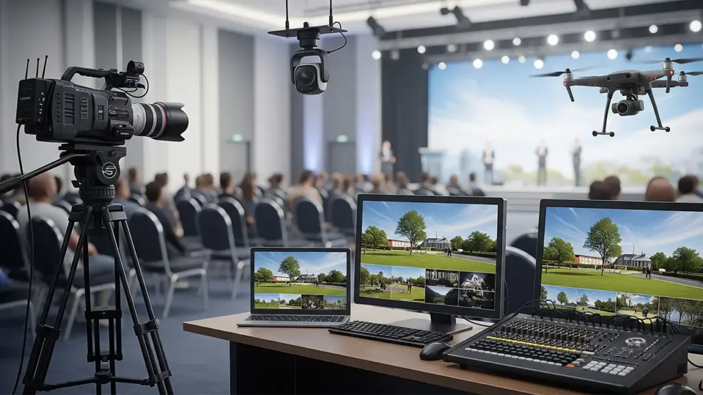 High-quality recording and real-time streaming via PTZ (pan-tilt-zoom), drone, and tripod-mounted cameras for standart, hybrid and digital events.