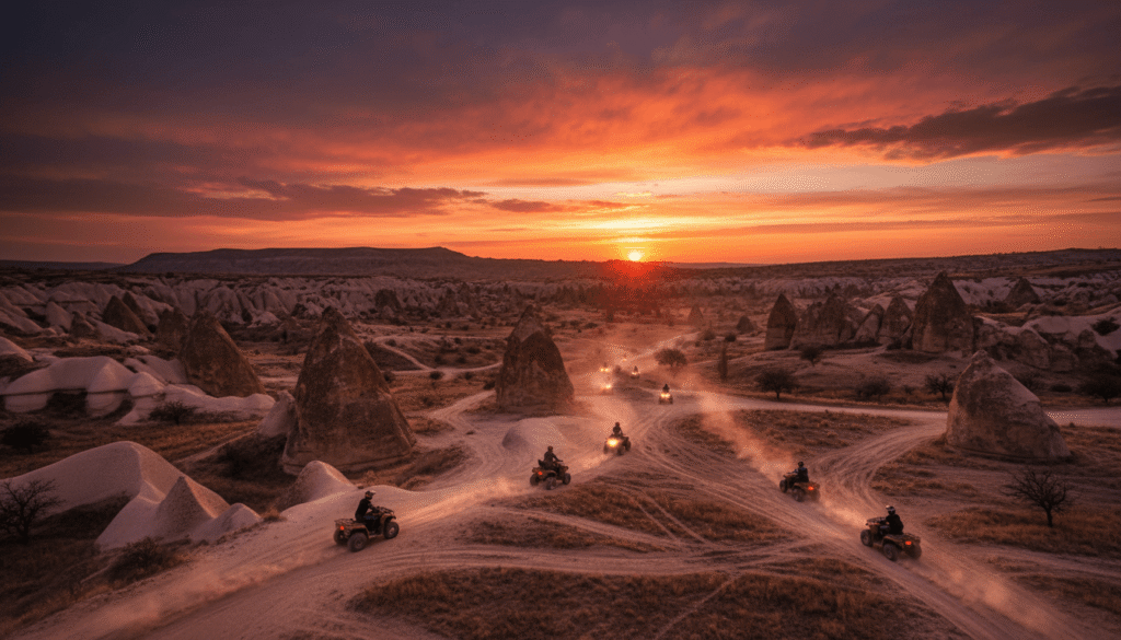 Kapadokya’nın vadilerini ve peri bacalarını ATV veya jeep ile keşfetmek, özellikle enerjik ve dinamik ekipler için ideal bir aktivite. Takımlar halinde yapılan safari turları, hem heyecan hem de ekip koordinasyonu gerektiriyor. Gün batımında Kızılçukur Vadisi’nde durup manzaraya bakmak ise etkinliğin unutulmaz finalini oluşturuyor.
